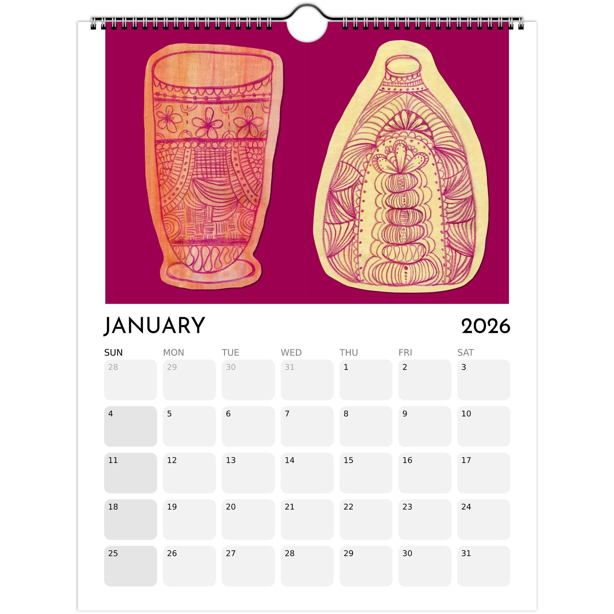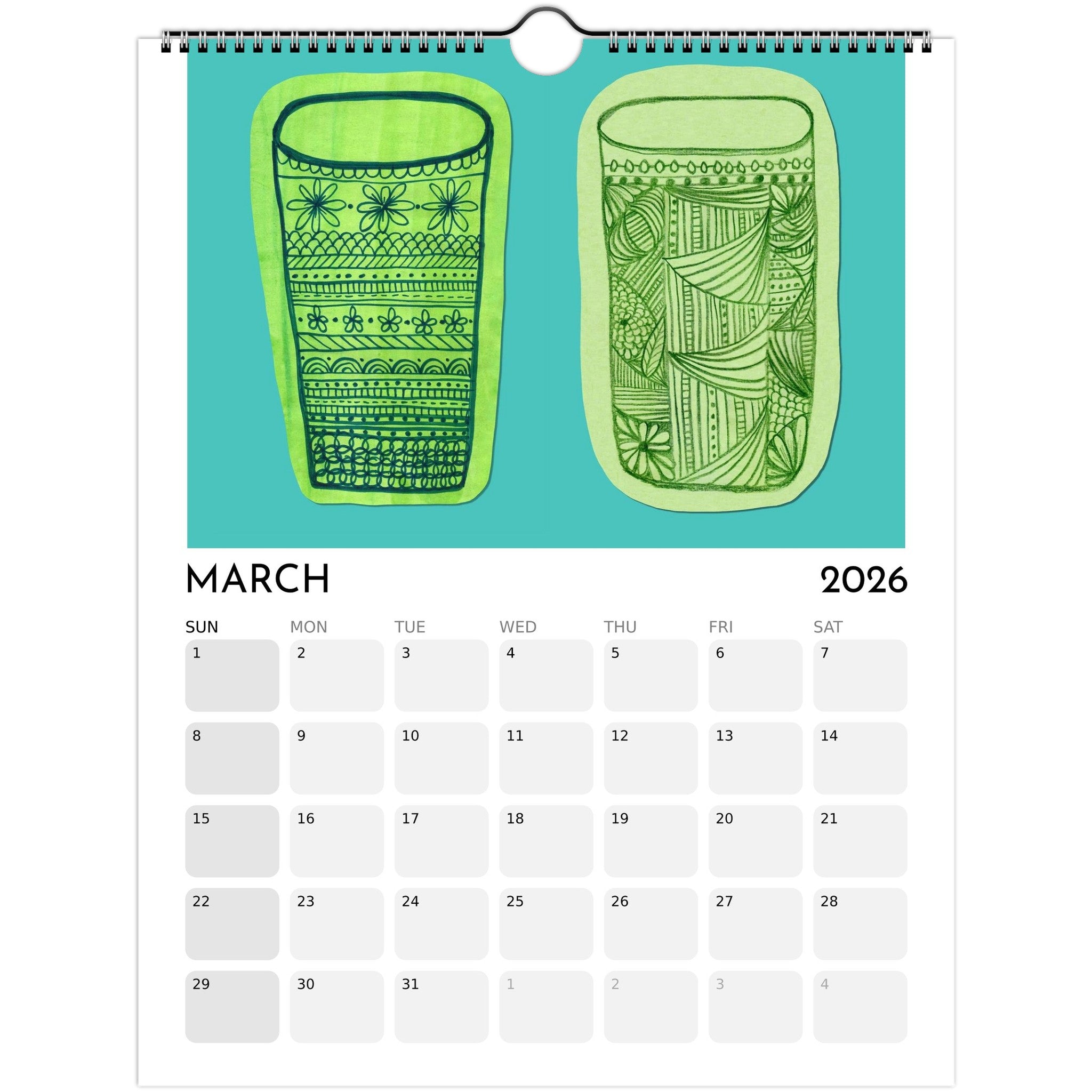 Enjoy twelve colorful months of Vases and Vessels by UshaDesigns. Inspired by her 100-day project of mark-making motifs, Usha hand-painted and hand drew each piece of artwork, then digitally cut them out and arranged on a page for every month.